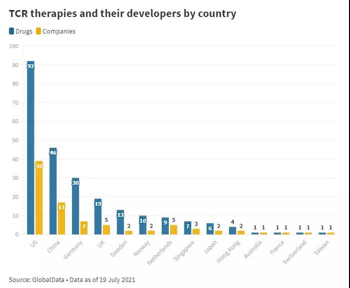 德國、英國和荷蘭等歐洲國家擁有一些僅次于美國和中國的全球最大TCR-T開發(fā)團(tuán)隊(duì)。這些國家領(lǐng)先的TCR-T公司包括Immatics、荷蘭公司Gadeta、GSK和英國生物技術(shù)Adaptimmune。此外,在過去幾年中,歐洲以TCR為重點(diǎn)的生物技術(shù)也給出了大力支持。